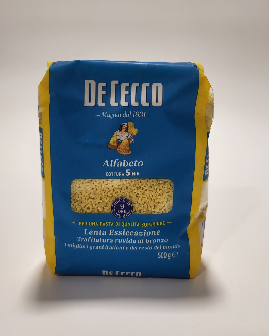 A De Cecco Alfabeto n°173 egy hagyományos olasz kis betűtésztás (alfabeto) forma, amelyet főként levesekhez használnak. A pici, betű alakú tészták különösen népszerűek gyermekek körében, de bármilyen zöldséges vagy gazdag levesben vidám és ízletes elemmé válnak.